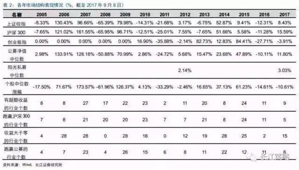 9月11日,长江证券发布了一份研究报告,指出2017年至今的A股市场存在的几个有趣的结构性现象: