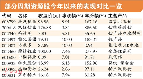 今年以来,周期性资源股已连续上涨,煤炭、钢铁、有色等板块内多数个股涨幅较大。不过,根据广州日报全媒体记者了解,多数机构依然看好资源股年内表现,其中,在环保压力和需求回升下,铝、钴、锂和磁材等相对被看好。