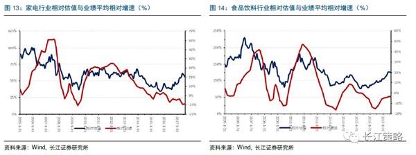 3、由于消费的业绩增长具有稳定性,投资者关注的是消费股相对增速的可持续性,数据上体现在未来两年相对业绩复合增速或者未来两年业绩平均相对增速与相对估值的相关性上。