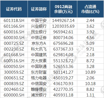 具体个股来看,在目前的950只两融标的中,73只个股两融余额超过了20亿元。其中,有14只个股两融余额逾40亿元(见下表),中国平安和兴业银行以145亿元和120亿元居前两位。这些个股基本都是大盘权重蓝筹,两融余额高企并不意外。