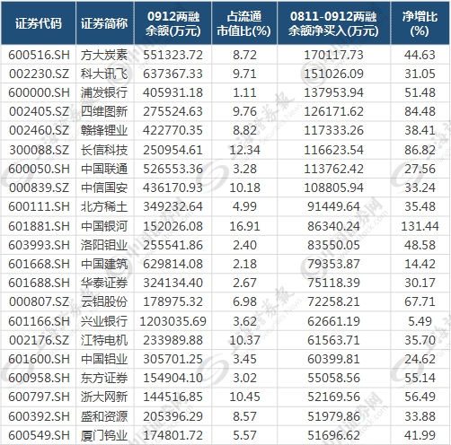 从8月11日到9月12日的最近一个月来看,两市有21只个股两融余额净买入额超过了5亿元(见下表),10亿元以上的有8只个股,方大炭素以17亿元的净增额居首。可以看到,这些个股基本都有不俗表现,即两融余额净增额与股价表现呈正相关。