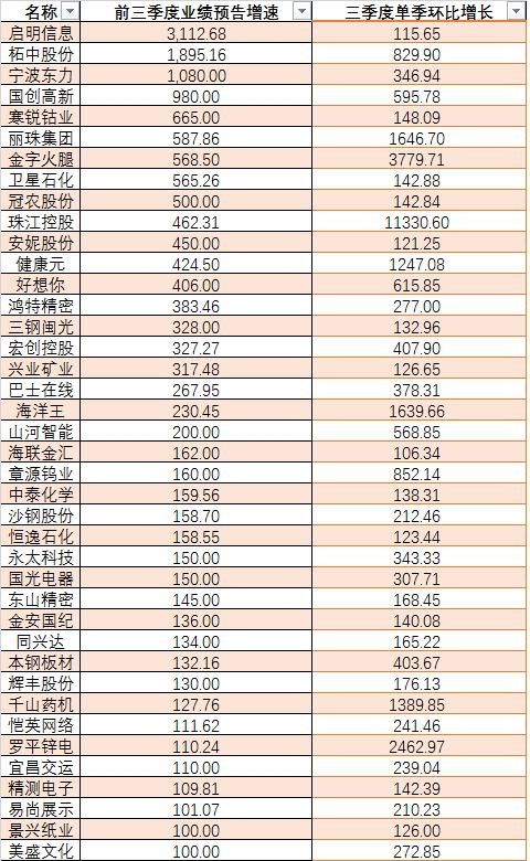 40家公司业绩预告翻倍且三季度环比高增长