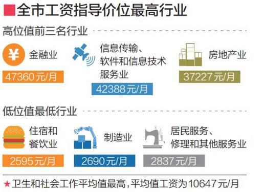 而从高位值来看,排名前三的行业为金融业,信息传输、软件和信息技术服务业以及房地产业,高位值分别为47360元/月、42388元/月和37227元/月。