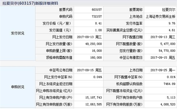 根据交易所公告,上海拉夏贝尔服饰股份有限公司于2017年9月25日起在上海证券交易所主板上市交易。