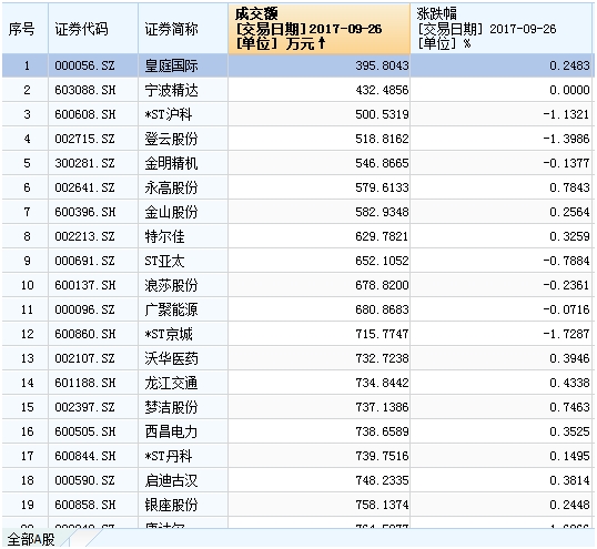 大盘缩量,一些个股表现则更是冷清。据统计,剔除一字涨跌停的股票,今日有效成交额低于1000万元的股票,多达49只,其中皇庭国际、宁波精达成交额分别只有396万元、432万元。