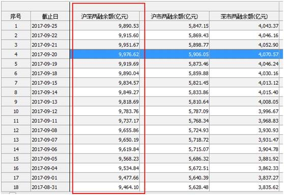 代表活跃资金的融资融券,在前期一度接近万亿元大关之后,近期连续几天回落。9月25日,两融余额跌破9900亿元,连续3天下滑。前期,市场两融余额经历一段时间的稳步上扬,9月20日达到9976.62亿元,创出20个月以来新高。