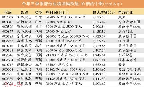 从行业来看,三季度多家公司主要产品价格继续上涨,钢铁、煤炭、有色等周期性行业上市公司业绩预喜比例在85%以上。钢铁领域中的三钢闽光和韶钢松山目前净利增速领先同业,预计三季度净利润同比增幅分别328%~378%和1652.6%~1652.6%。煤炭板块中的中国神华今年上半年归属于上市公司股东净利润达到243.15亿元,今年前三季度预计同比增幅超过100%。露天煤业前三季度净利增速也将超过95%。