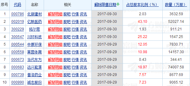 点击查看限售解禁数据 (来源:东方财富网)