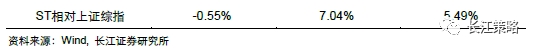 但是从另一个角度来看,定向降准有望提振市场预期与风险偏好,我们统计了8次降准之后的相关指数表现。发现在降准之后15个交易日,ST概念相对上证综指取得正收益的概率为62.5%;降准之后30个交易日,ST概念相对上证综指取得正收益的概率为75.0%;降准之后60个交易日,ST概念相对上证综指取得正收益的概率为87.5%。ST概念指数的超额收益一定程度上反应市场风险偏好,这也印证了降准对短期风险偏好有所影响。