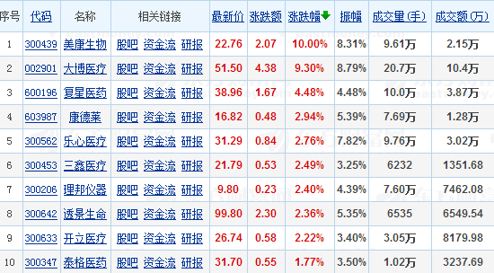 点击查阅医疗板块行情(数据来源:东方财富网)