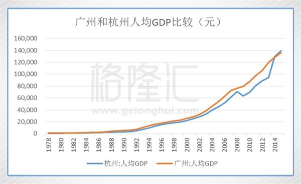 从人均GDP看更明显,2014年杭州的人均GDP已经超过广州,而且人均GDP曲线更陡,说明增速也是要快的。