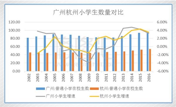 自秦开始就是华南中心的广州,在教育、医疗和文化等方面还是当之无愧的广东门面担当,而且经济总量差不多是杭州一倍,小学生人数总量和增长也是一线城市中较好的,只是杭州显得更好。在现在快速发展的氛围下,人们更看重是增速,就像股票,给予高增长的公司溢价,而平稳型公司却是杀估值。