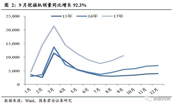 机械销量回暖,源于需求增量与设备更新齐发力。以挖掘机为例,地产和基建是其主要需求,今年地产投资有韧性,基建投资维持高速,增量需求对销量有正面影响。房地产开发投资完成额今年1-9月累计同比为8.1%,基建投资完成额今年1-9月累计同比为15.88%。挖掘机上一次采购增速加快是从2005年开始,挖掘机的寿命一般在10年左右,且到2015年11月,挖掘机10年保有量有131.3万台,根据挖掘机采购周期与寿命,现在正是设备更新的时候。