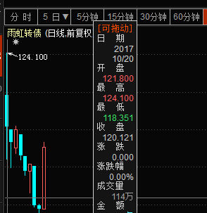 首只信用申购的雨虹转债于10月20正式上市交易,上市首日,市场反应热烈。开盘价121.8,即收益率为21.8%;收盘价120.12,即收益率20.12%