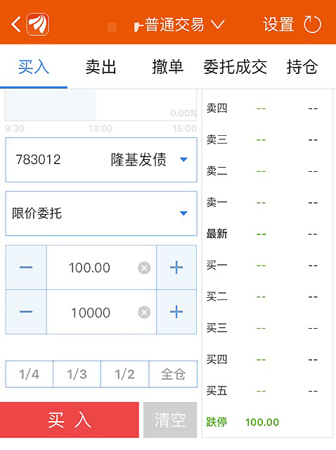 ▍第一步,进入交易界面,输入申购代码783012,操作方向买入,果断顶格申购10000张