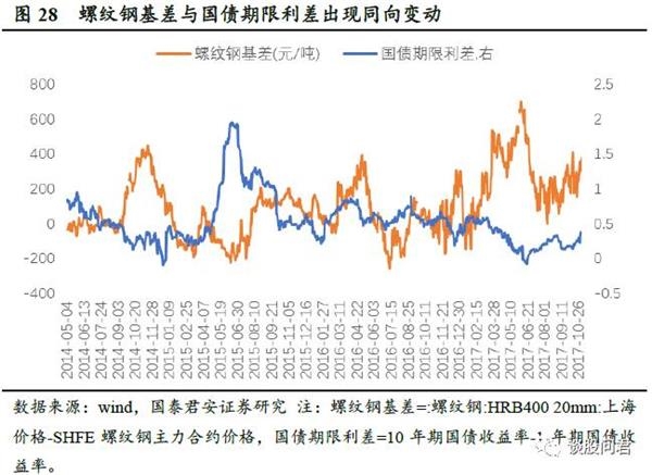 近期市场投资者对通胀日益关注,我们认为从大类资产的表现上能看出端倪。我们发现历史上螺纹钢基差和国债期限利差呈现负向相关关系,但近期这种关系出现了背离:螺纹钢基差扩大(经济预期向下,价格预期向下),但国债期限利差变大(经济预期向上,通胀预期向上)。这意味着市场通胀预期开始上升,且主要来源可能是在CPI部分,及非工业品部分。即2016年以来PPI上升后,终将完成对CPI的传导。