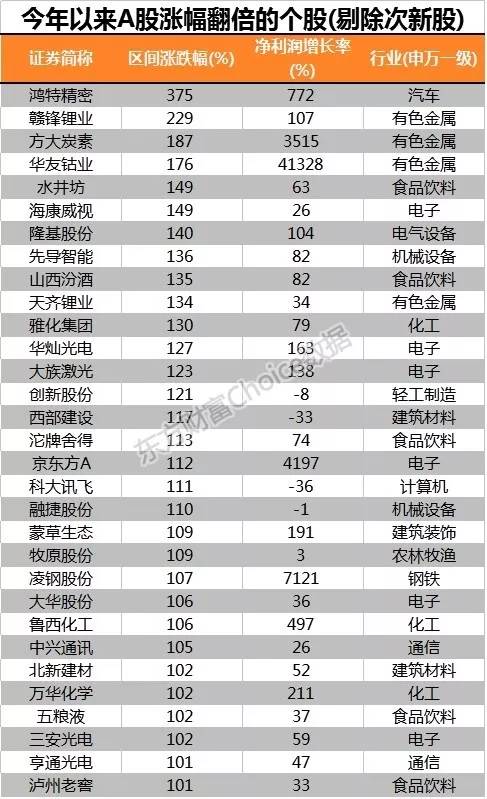 而绩优是其中涨幅强劲的个股的核心特征。东方财富Choice数据显示,在126只今年以来涨幅超50%的个股中,今年前三季度净利润同比呈正增长的个股有118只,占比高达94%,其中净利润增幅超50%的个股有68只,占比超过半数。