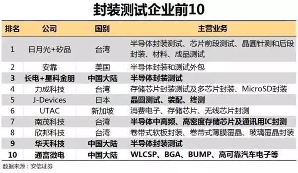此外,我国封测企业通过内生外延协同发展,已初具规模。长电科技、华天科技、通富微电等都已跻身全球前10位。