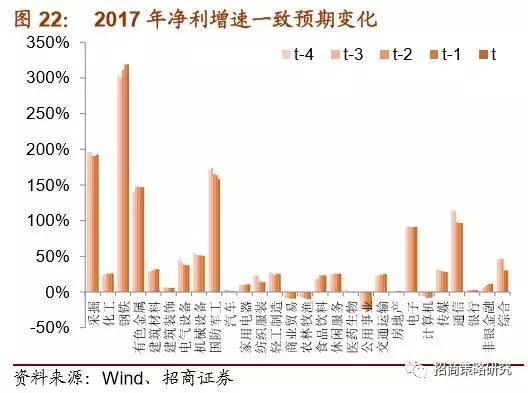 【盈利预测】对全A(非金融)2017年盈利预测持平,对中小板2017年盈利预测下降,对创业板2017年盈利预测下降;对部分周期品(特别是钢铁)、食品饮料等行业盈利预测上调,对国防军工、通信等行业盈利预测下调(均为Wind一致预期).