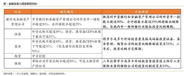 (1)中方决定将单个或多个外国投资者直接或间接投资证券、基金管理、期货公司的投资比例限制放宽至51%,上述措施实施三年后,投资比例不受限制;