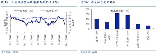 上周股票型基金仓位由79.67%升至83.22%,混合型基金仓位由47.76%升至51.51%。所有基金当中,减仓基金占61.30%,约32.07%的基金减仓幅度小于2.5 %。