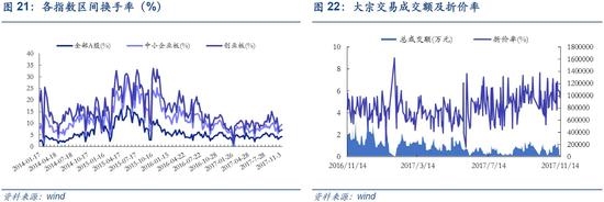 ■换手率:上周全部A股区间换手率上升0.13%达到4.3%;中小板换手率上升0.54%达到9.48%;创业板换手率上升0.29%至7.28%。