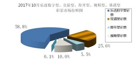 1-10月累计,乐透数字型彩票销售2142.06亿元,同比增加144.27亿元,增长7.2%;竞猜型彩票销售752.11亿元,同比增加120.26亿元,增长19.0%;即开型彩票销售206.37亿元,同比减少30.40亿元,下降12.8%;视频型彩票销售382.22亿元,同比增加15.29亿元,增长4.2%;基诺型彩票销售1.57亿元,同比减少0.73亿元,下降31.8%。1-9月乐透数字型、竞猜型、即开型、视频型和基诺型彩票销售量分别占彩票销售总量的61.4%、21.6%、5.9%、11.0%、0.1%。