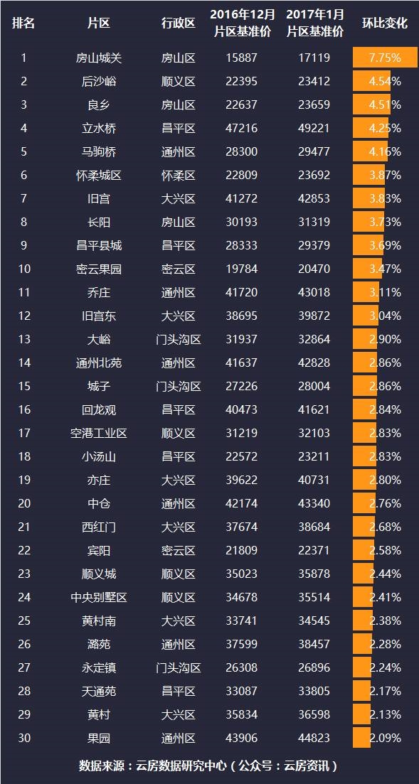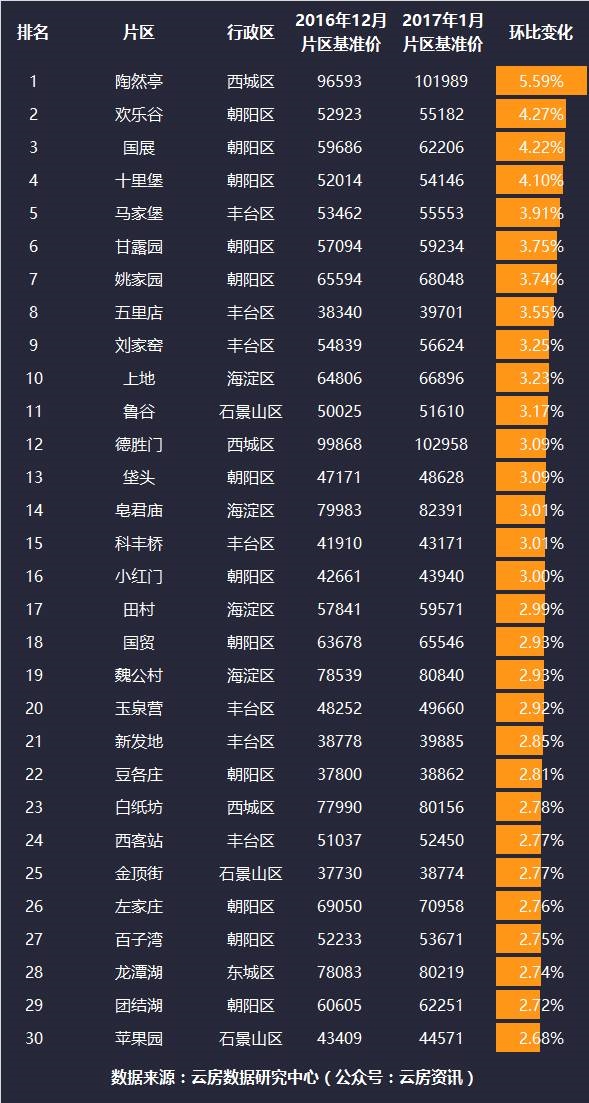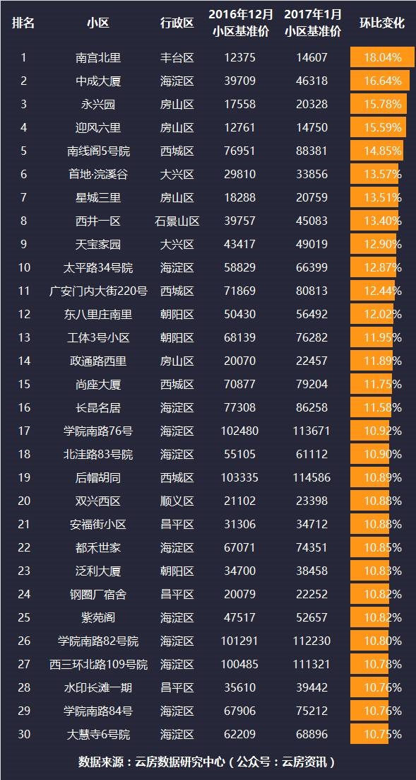 2017开年房价炙手可热 北京二手住宅价格全榜单发布!