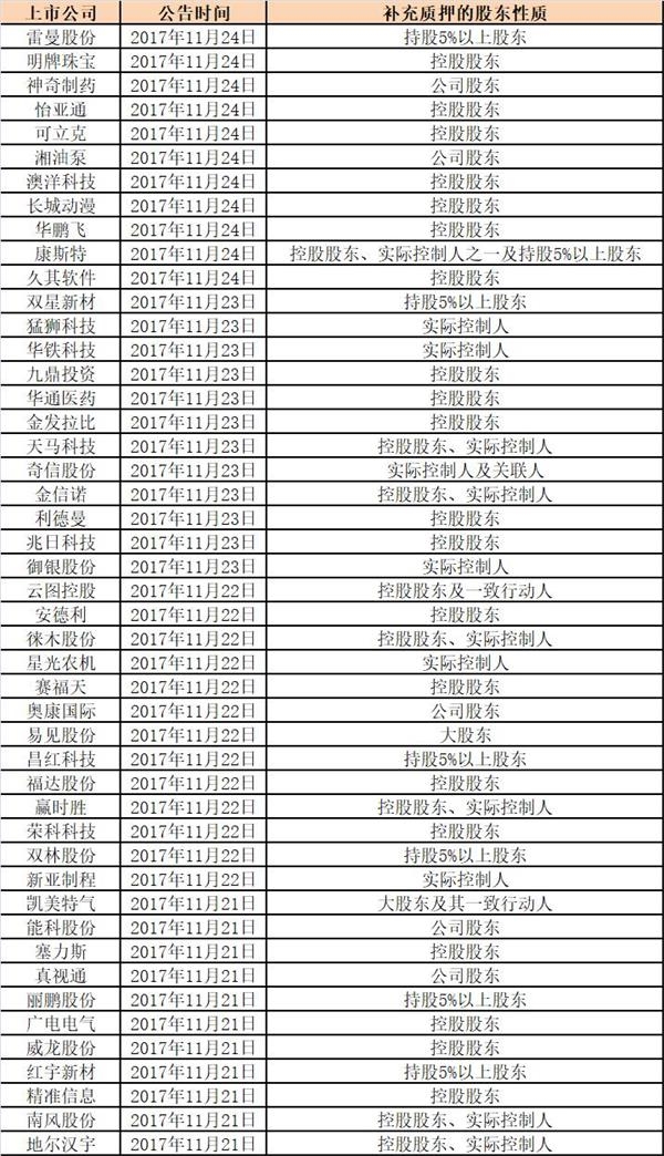 据巨潮数据统计,近期公告补充质押的公司名单大致如下: