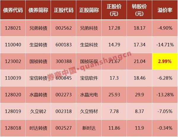 市场担忧不无道理。据券商中国记者统计,还未发布上市日期的可转债还有7只,分别为时达转债、久立转2、水晶转债、宝信转债、国祯转债、生益转债、兄弟转债,以目前可转债正股的价格来看,仅国祯转债的正股价格高于转股价格,其余6只可转债均出现不同程度的折价。