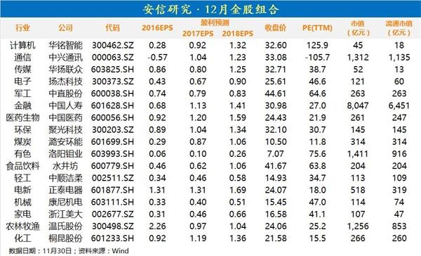 安信证券:12月企稳反弹 展开延续数月的行情(附十大金股)