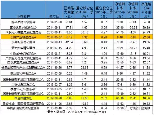 还有一类混合型基金,它们选择了在2015年整年保持极低的仓位,在2017年加大仓位。
