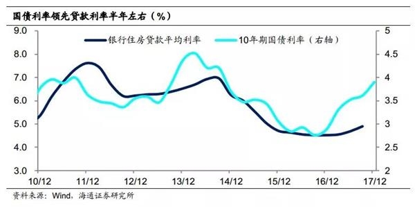 利率传导角度。由于10年期国债是长期利率的基准,其上行会带动企业债利率上升,最后会带动贷款利率上行,期间时差在半年左右。本轮国债利率的回升始于16年末,而17年6月份以后贷款利率开始明显回升,而10月份长期国债的大幅调整意味着未来贷款利率仍有上行压力,将对经济持续形成冲击。这意味着从脱虚向实、三去一降一补的角度而言,政策也不支持国债利率大幅上行。