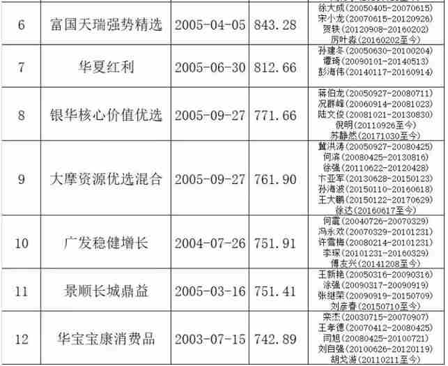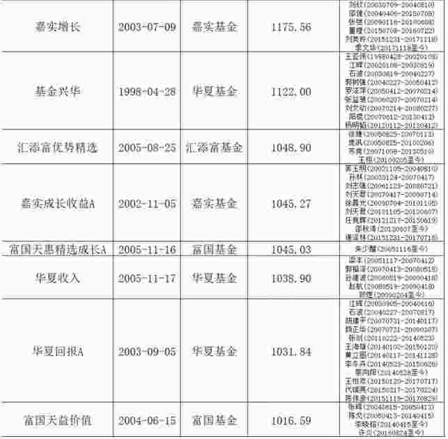 在成立以来收益超10倍的12只基金中,基金兴华是唯一一只传统封闭式基金,该基金1998年4月28日成立,是当年成立的首批5只传统封基之一,2013年4月11日到期“封转开”。在运作的接近12年的时间里,基金兴华单位净值增长率达到11.22倍,成为史上最牛封基。王亚伟是该基金首任基金经理,此后还先后有8位基金经理掌管过该基金,他们的接力成就了封基之王。