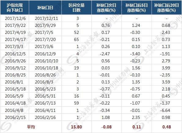 2016年2月以来沪指出现的向下跳空缺口后相关情况