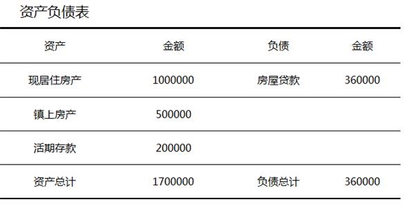 陈先生配置了两套房产,一套在目前工作的地方,花了80万配置的二手房,目前价值100万,另一套在镇上老家花了40万配置的,目前价值50万。镇上老家当时买得便宜,所以贷款均以还清,现在只需每月负担现在住的房子的房贷,每月3000元,还剩10年。
