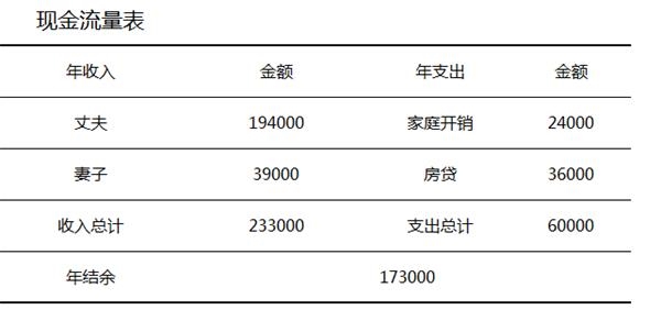 夫妻俩每月生活支出2000元,能结余资金1万元左右。两人目前最大的目标是将来儿子结婚的事情,所以现在居住这套房子将来也会作为儿子的婚房,两人打算在退休后,回镇上老家生活。