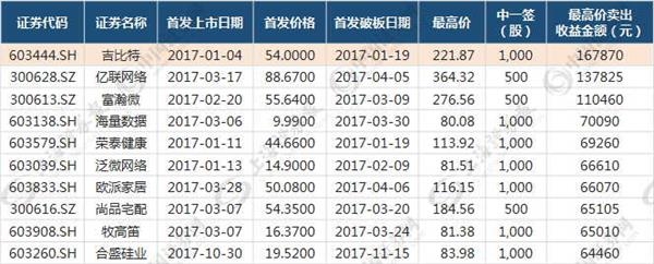 今年以来,收益金额最高的是今年1月上市的吉比特,中一签可赚16.79万元。排在后两位的是亿联网络和富瀚微,中一签分别可赚13.78万元和11万元。而从上市时间来看,收益金额较高的新股多数集中在今年上半年上市。