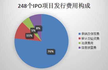 IPO过程中,248个IPO项目披露出来的发行成本费用合计为118.3亿元。这些费用主要包括四块:承销及保荐费、审计及验资费和律师费用等。