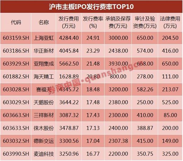 单一IPO发行成本最高近30%