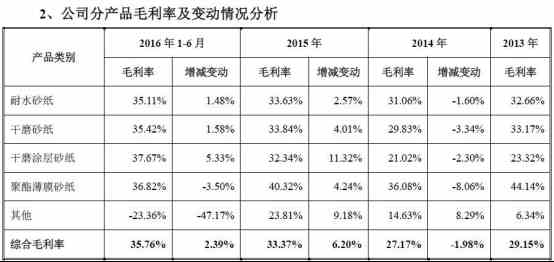 对此,发审委在首发申请反馈意见中指出,2012年,2013年,2014年,报告期内发行人综合毛利率为26.67%、29.15%、27.17%。(1)请发行人说明其如何保证在耐水砂纸上的较高议价能力,说明这种议价能力的保持是否与该产品面临的市场竞争程度相匹配,说明2014年耐水砂纸品种结构优化的具体内容。(2)请具体说明各产品生产工艺优化的具体内容及其对毛利率的量化影响,说明不同产品之间是否存在替代的效应及各产品技术优劣。(3)请发行人结合可比上市公司的产品、运用领域、客户结构、市场等差异,说明发行人毛利率高于可比上市公司的原因,说明可比上市公司产品毛利率持续下滑而发行人持续上升的原因。(4)请保荐机构、申报会计师详细核查上述情况,分析毛利率数据计算的正确性、变动趋势的合理性,并明确发表意见。