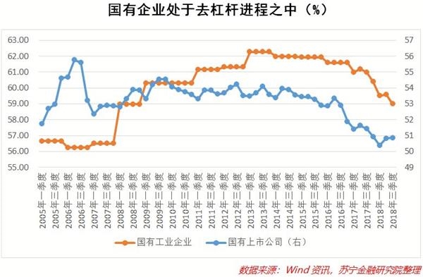 第三,国有企业去杠杆进程中无法提供稳定的优质资产。2018年,去杠杆进程已转向结构化去杠杆阶段,其中国有企业是去杠杆的优先方向。但从数据来看,2017年以来,无论是国有工业企业的资产负债率,还是国有上市公司的资产负债率,都处于整体下行通道之中(参见下图)。值得注意的是,国有企业的去杠杆主要有债转股、混合所有制改革和削减负债三种方式,其中前两种方式是通过债权转化给股权实现去杠杆,影响相对较小,而削减负债的方式则较为激烈,特别是针对国有“僵尸企业”,中央经济工作会议提出将“加快处置‘僵尸企业’”。整体来看,在去杠杆过程中,2019年来自国有企业的“资产荒”问题将延续。