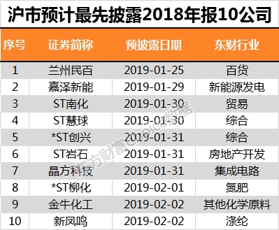 12月27日,上交所先行披露了2018年年报预约披露时间表,兰州民百拔得头筹,将于1月25日披露,其次是嘉泽新能,将于1月29日披露。