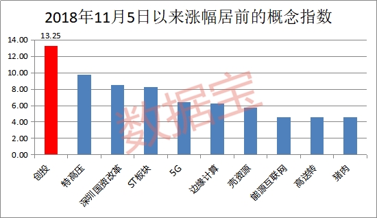 自去年11月5日至今,创投指数逆市上涨13.25%,领跑概念指数,22只创投概念股在此期间股价创2018年以来新高。