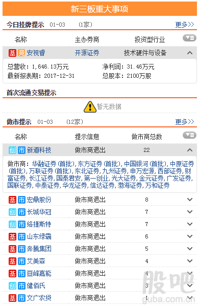 3日新增挂牌企业1家,截至2019年1月3日,挂牌企业总数达到10684家。