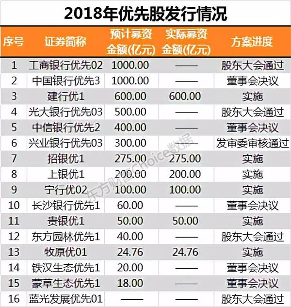 年内有18家公司发行了优先股,其中6家已实施,2家终止实施,另外10家公司要么是董事会决议、股东大会通过或者是发审委审核通过状态。