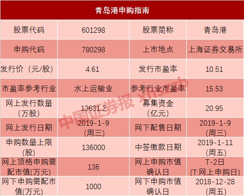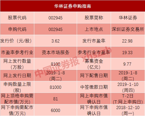 从今天开始,本周沪深两市将先后迎来4只新股申购,每天一只。分别是今天(1月8日)中小板的华林证券(申购代码:002945),9日沪市主板的青岛港(申购代码:780298)、10日沪市主板的宁波水表(申购代码:732700)和11日沪市主板的明阳智能(申购代码:780615)。