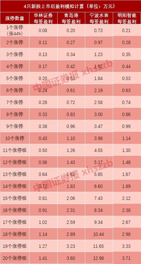 如果4只新股上市后,能达到2018年上市新股的平均水平——8个涨停板的话,每签获利分别约为0.33万元、0.83万元、3万元和0.86万元。