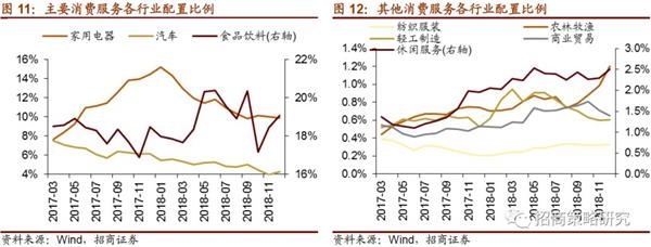 三大消费服务类行业中,食品饮料占比继续上升0.6%至19.1%;汽车占比上升0.3%至4.2%;家用电器占比小幅下降0.1%至9.9%。其他消费服务类行业中,农林牧渔占比小幅上升0.2%至1.2%;休闲服务占比小幅上升0.2%至2.5%;商业贸易占比小幅下降0.1%至0.6%;纺织服装、轻工制造占比与前期基本持平。