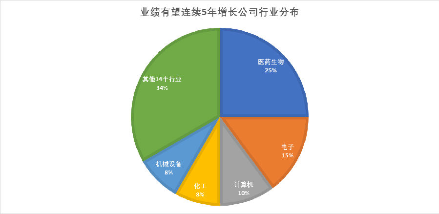 1月21日, 凯利泰、洲明科技、苏交科发布业绩预告, 预计2018年净利润同比增长。此前这三家公司业绩已经连续4年保持增长。根据业绩预告和历年财务数据统计发现,像以上三家公司一样有望连续5年实现业绩增长的上市公司总共有123家,主要分布在医药生物及电子行业。